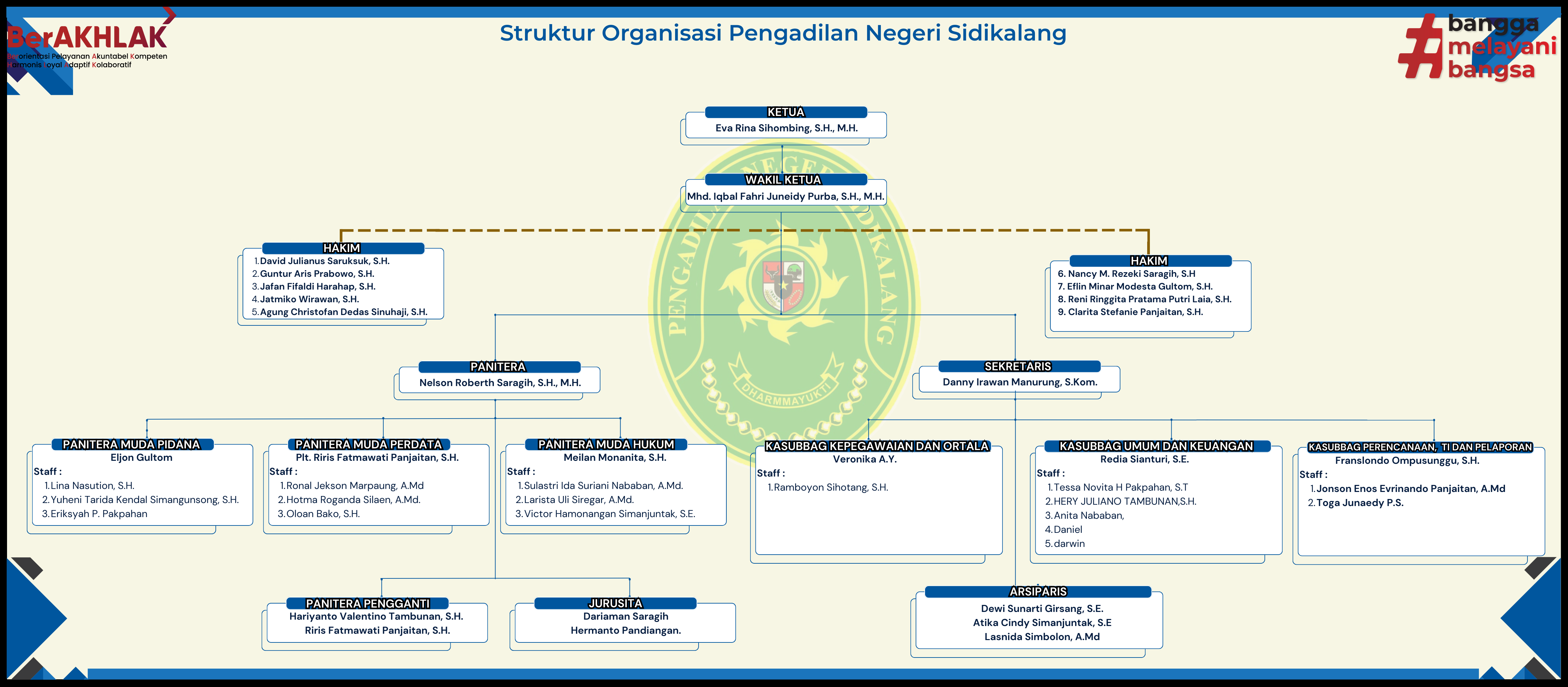Di halaman ini dijelaskan serta digambarkan mengenai struktur organisasi yang ada di Pengadilan Negeri Sidikalang.