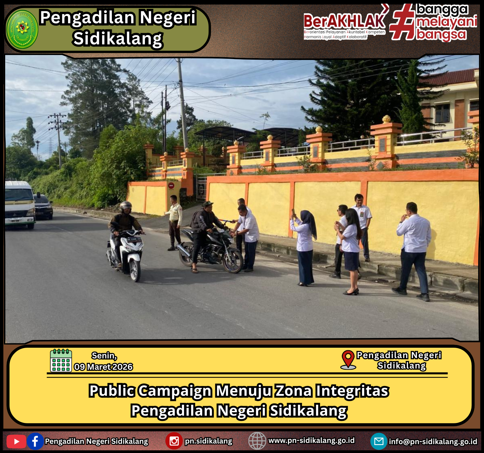Sidikalang, Senin 09 Maret 2025 Pukul 08.30 WIB – Pengadilan Negeri Sidikalang Kelas II menggelar kegiatan Public Campaign Pembangunan Zona Integritas sebagai bagian dari upaya mewujudkan lingkungan Peradilan yang bersih, transparan dan bebas dari korupsi.