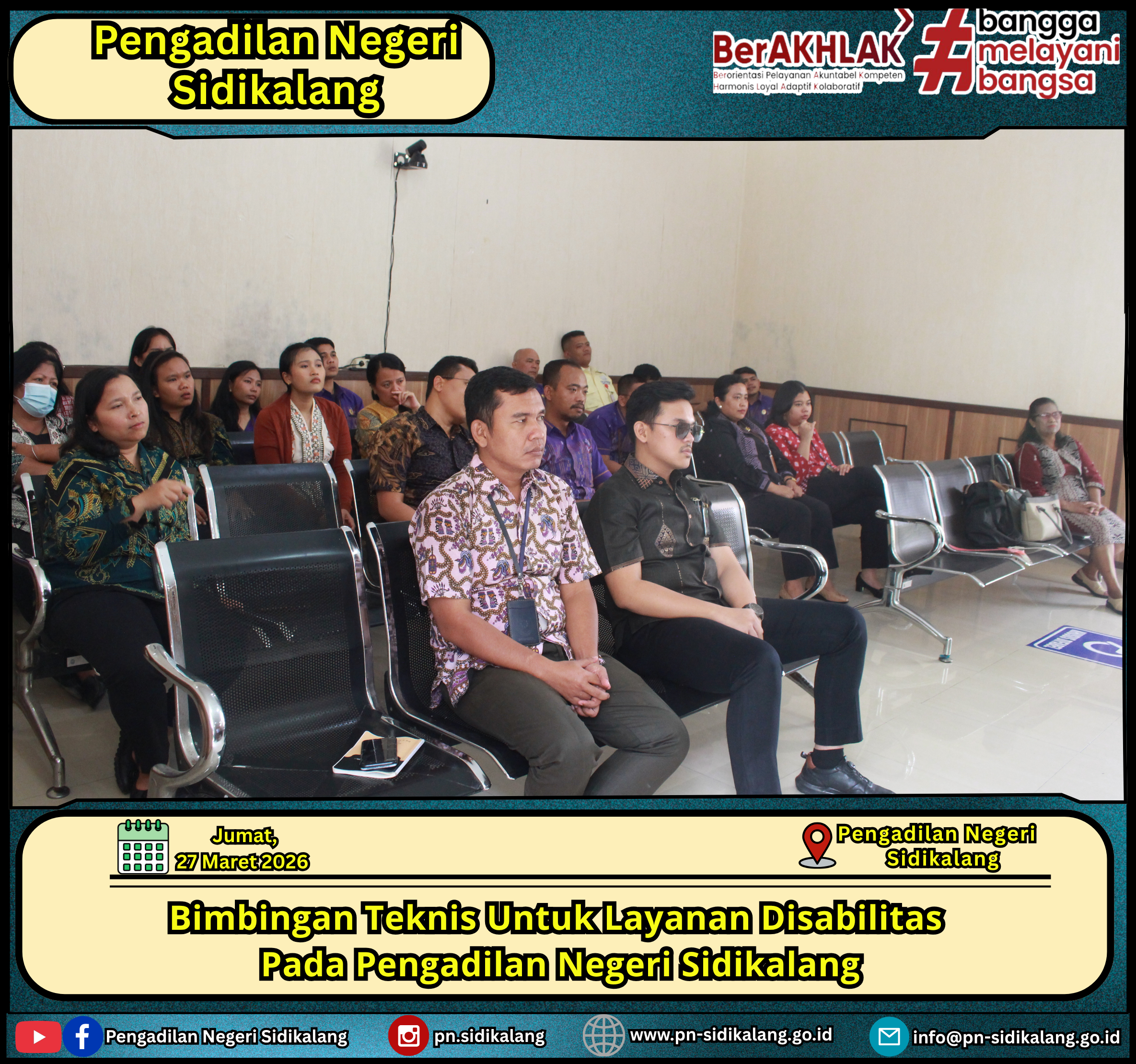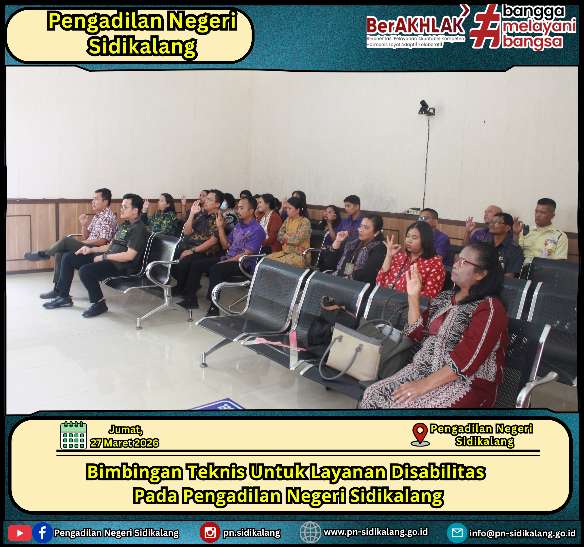 Kegiatan yang dihadiri oleh Hakim, Pejabat Struktural, Fungsional, hingga pegawai PPPK ini bertujuan untuk meningkatkan kualitas layanan bagi penyandang disabilitas di Pengadilan Negeri Sidikalang.
