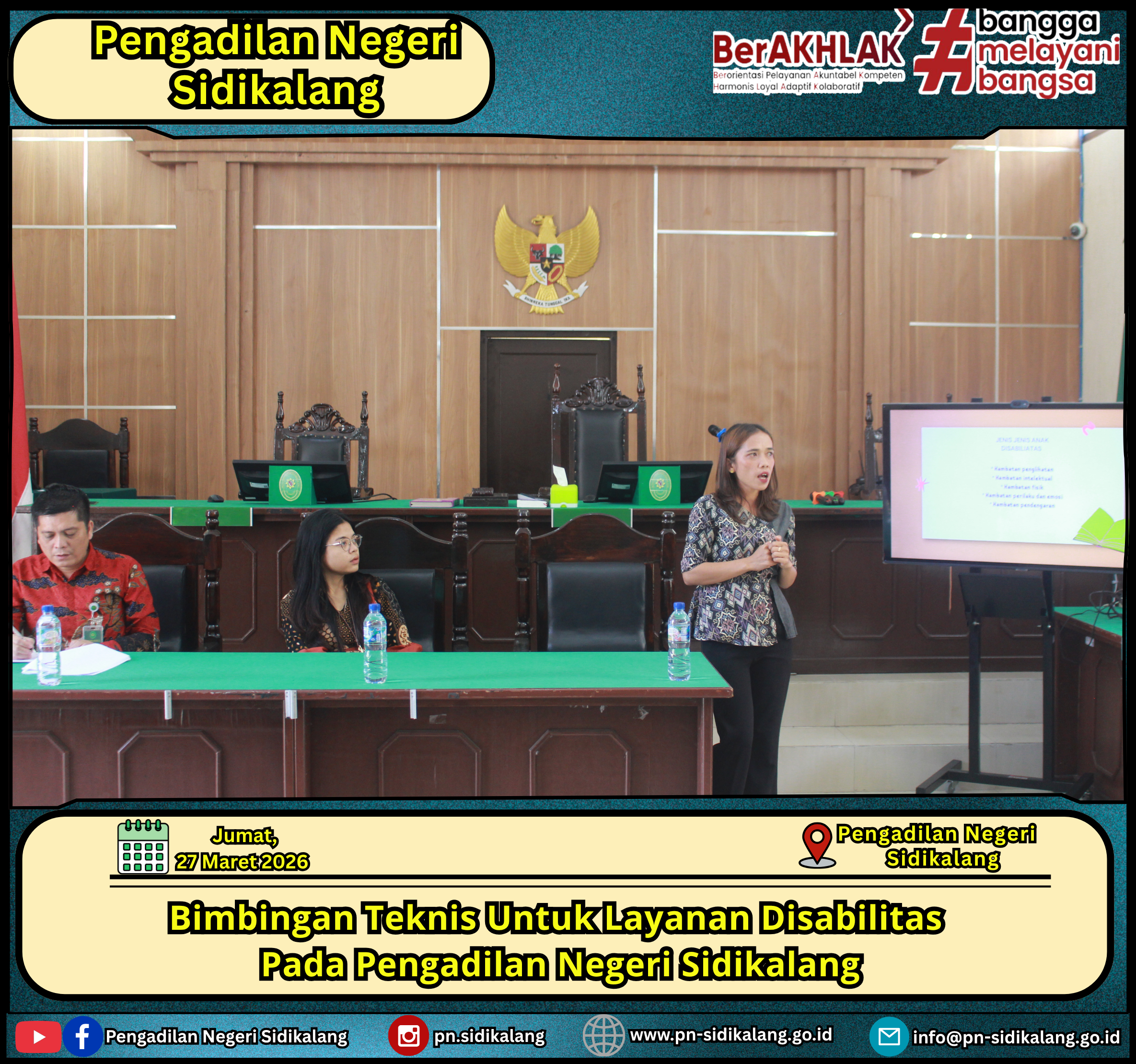 SIDIKALANG – Pengadilan Negeri Sidikalang menggelar Bimbingan Teknis Untuk Layanan Disabilitas sekaligus penandatanganan Kerjasama (MoU) dengan SLB Negeri Sidikalang pada Jumat (27/3/2026).